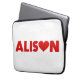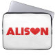 The name Alison with the letter o replaced with a red love heart. The colours can be changed.