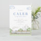 This editable modern train birthday party invitation sets the tone for your chugga chugga train theme birthday celebration. The HORACE Collection features a white background with a watercolor blue choo choo train chugging along down the train tracks with steam coming out of the engine in front of a snow capped mountain and green trees and a pair of fluffy clouds in the sky. A pairing of classic serif fonts and a script font in blue and grey with all editable text completes this train theme kids birthday party invitation for a train birthday featuring everyone's favourite locomotive 🚂.