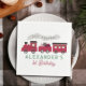 This cute "all aboard" Christmas holiday kid's birthday photo invitation features a white background with steam train in red. The reverse side features a white background with red diagonal stripes. Personalize it for your needs. You can find matching products at my store.