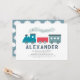 This cute "all aboard" boy's 1st/first birthday invitation features a white background with steam train in blue and red. The reverse side features a sky blue background with cloud patterns. Personalize it for your needs. You can find matching products at my store.