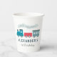 This cute "all aboard" boy's birthday paper cup features a white background with steam train in blue and red. Personalize it for your needs. You can find matching products at my store.