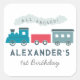 This cute "all aboard" boy's birthday sticker features a white background with steam train in blue and red. Personalize it for your needs. You can find matching products at my store.