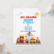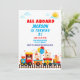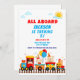 All aboard for birthday fun! This adorable train-themed birthday invitation features colourful circus animals, cheerful balloons, and bold text — perfect for toddlers and young children.