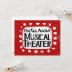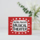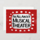 "I'm All About Musical Theatre" is a cute text design in red with black text, along with a white accent shape and white textured whimsical dots surrounding it.
