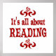 Share your love for books and reading with this fun red design with flourishes and the words - It's all about Reading. Great for a teacher, librarian or student.
