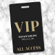 All Access Elegant Black Gold Special Event VIP Badge. Great for fashion shows, concerts, large special events like conferences, speakers, and can even work for a birthday party or any other party where you want to make your guests feel special. A simple modern, yet elegant look. At bottom is a bold serif font mixed with simple typography, with VIP, the event name, date, and 'All Access'. You can change all of the text information and colours of this badge from the current black and gold colouring.