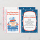 Our Firecracker is Turning ONE!! Start your celebration off with this adorable 1st birthday invitation. Right side has a blue background with red and white small scattered stars. There's a white oval where you personalize with your party information.. On the left side is a cute baby in a white and blue barrel with stars on it wearing a patriotic hat and holding the American flags There's a row of red and blue small stars in the middle and the left border. Check out the other designs and colours we offer. ©JW Illustrations