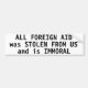 All foreign aid was stolen from us and is immoral bumper sticker