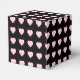 Pink hearts against a black background adorn this lovely favour box. A great way to celebrate love.