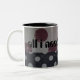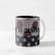 All I Need Is Coffee Custom Design Coffee Mug, red polka dot over black and white polka dot motif.