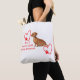 Featuring an adorable dachshund design with bold red lettering, hearts, and paw-print accents, this tote is ideal for: