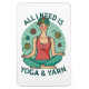 The phrase "Woman meditating with yarn, all I need is Yoga and Yarn" suggests that the woman finds both yoga and yarn crafting to be important aspects of her life. By combining the two activities, she is able to achieve a sense of relaxation, mindfulness, and creativity.
