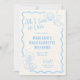 On the front, you'll find space for all the essential details: the bride's name, the location, and the date of the bachelorette weekend. The charming handwritten font and beachy icons create a fun and relaxed vibe, inviting guests to join in the festivities. The soft sky blue and off white color scheme evokes the serene beauty of the coast, while the playful design elements ensure that your invitation stands out.