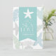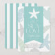 This chic coastal chic "All I Sea is Love" bridal shower invitation features a light turquoise blue ribbon, seashells, a sea turtle/honu, and starfish in pastel blue and green shades. The Reverse side features a white background with turquoise blue stripes. Personalize it for your needs. You can find matching products at my store.