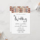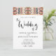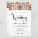 All in One with Details African Motif Modern Calligraphy Wedding Invitation... Our colourful "All in One" African motif wedding invitation features modern black calligraphy script combined with elegant serif typography bordered on top by a dramatic brick red, burnt orange, and black tribal design. The BACK of the invitation contains all of the DETAILS you would typically see on separate cards in the wedding packet, including reception time and venue, accommodation options, wedding website, RSVP and gift registry information. This modern style wedding invitation was designed to be both elegant and budget conscious... not to mention time-saving. All example text (aside from the graphic calligraphy elements) can be easily revised with your own information on the personalization template.