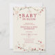 Cette invitation de baby shower Baby in Bloom All-in-one présente un design de fleurs vintages de cerisiers et de coccinelles. Le texte est dans un rouge juteux pour se coordonner avec les bourgeons de fleurs de cerisiers. L'envers présente les détails du baby shower ainsi que le code QR pour le registre de la mère à être. Personnalisez simplement le script pour vos besoins avec ce design doux.
