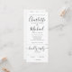 An all in one black and white wedding invitation featuring modern signature script names and elegant typography. The invitation includes an RSVP card that can be cut off and guest information details. Designed by Thisisnotme©