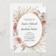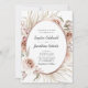 All in One Boho Blush Pink Floral Rose Gold Oval Dried Palm Leaves Wedding Invitation... Our boho "All in One" floral wedding invitation features an arrangement of beautiful blush pink roses, eucalyptus, and dried palm leaves around a faux rose gold metallic foil oval frame creating an elegant border for the invitation text within. The back of the invitation contains all of the details you would typically see on separate cards within the wedding packet. This modern style all-in-one wedding invitation was designed to be both elegant and budget conscious... not to mention time-saving. On the back there is also a QR code graphic template you can replace with your own code (or delete if you don't plan to use one). All example text can be easily revised with your own information on the personalization template.