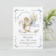 Adorable watercolor baby shower invitation featuring a sweet little squirrel holding a floral bouquet tied with a delicate blue ribbon and bow. Charming watercolor squirrel design with soft blue watercolor accents, elegant ribbon borders, and whimsical "A little squirrel is on the way" text – perfect for gender-neutral, boy, or nature-themed baby showers.