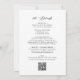 All in One Elegant Black Calligraphy Wedding Invitation... Our unique "All in One" black and white wedding invitation features black calligraphy script combined with sans serif text for a simple classic and elegant wedding invitation. The back of the invitation contains all of the details you would typically see on separate cards in the wedding packet. On the back there is also a QR code graphic template you can easily replace by typing in your wedding website's URL to generate the new code. You can do this at the same time you are revising the example invitation text with your own wedding information on the personalization template.
