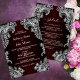 Invite your friends and loved ones to your wedding with this elegant white lace black and burgundy all-in-one wedding invitation. Designed for the budget savvy couple, this invitation includes the reception information, RSVP request details, and any other information you may wish to include on the reverse side of the invitation, saving you the cost of purchasing extra postage and wedding stationery. Please note: No actual lace has been used in this invitation.
