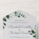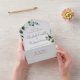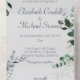 This All in One Invitation which includes the RSVP and Return Address features several Eucalyptus stems with leaves and Script Typography. The invitation is also customizable. Just insert your wedding particulars where it says, Personalize this template. I've marked the necessary template to aid you in this customization.