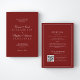 A deep red old money all in one wedding invite featuring refined typography on the front and an elegant script layout on the back. Designed with wedding details and a QR code RSVP for a seamless guest experience. Perfect for classic, formal, and luxury celebrations with a timeless aesthetic. Ideal for couples who love rich color palettes, traditional elegance, and a sophisticated editorial wedding style.