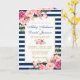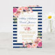 Elegant Watercolor Pink Blush Floral gold frame & gold script All-In-One Wedding Invitation with Blue and White Stripes.
