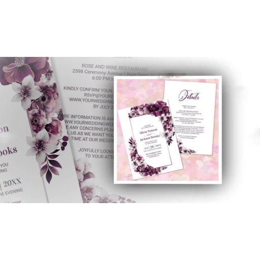 Invite your friends and loved ones to your wedding to witness and celebrate the beginning of your lifelong journey with this pink and plum floral invitation. The customizable text allows you to effortlessly add your names, wedding date, and the necessary details of your celebration. Designed for the budget-savvy couple, the reception venue location, RSVP response request, accommodation details, and any other information your guests may require can be included on the reverse side of this invitation, saving money on extra stationery. A variety of paper types and corner styles are available for your unique invitations, along with the option to download.