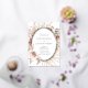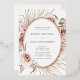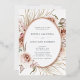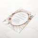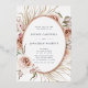 All in One Boho Blush Pink Floral Real Rose Gold Foil Oval Frame Dried Palm Leaves Wedding Invitation... Our boho "All in One" floral wedding invitation features an arrangement of beautiful blush pink roses, eucalyptus, and dried palm leaves around a real rose gold metallic foil oval frame creating an elegant border for the invitation text within. The back of the invitation contains all of the details you would typically see on separate cards within the wedding packet. This modern style double sided wedding invitation was designed to be both elegant and budget conscious... not to mention time-saving for busy brides-to-be. On the back there is also a QR code graphic template you can replace with your own code (or delete if you don't plan to use one). All example text can be easily revised with your own information on the personalization template.