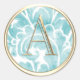 ALL INITIALS Gold Monogram Turquoise Plume Classic Round Sticker