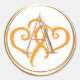 ALL INITIALS Gold Monogram Two Orange Hearts Classic Round Sticker
