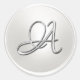 ALL INITIALS Silver Script on White Classic Round Sticker