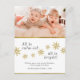 This is an excellent choice for any family looking for a funny Christmas photo card! This design features a cute, funny photo at the top of the page. Beneath that is a gorgeous typography in elegant fonts that reads "All is calm-ish, all is bright!", a funny twist on a traditional phrase. The typography is separated by a curve of gold foil snowflakes that gives the card that festive feel. Underneath it has a custom Christmas message and your name and year. A perfect card for any family with young kids where calmness is elusive!