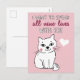 This romantic Valentine greeting card features a white and lovely cartoon cat on a pink background with a white heart.