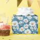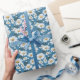 Wrapping paper is shown with a lovely blue daisy floral print.