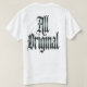 Make a statement with this "All Original" typography design, featuring a bold, metallic-finish blackletter script. Drawing inspiration from classic West Coast tattoo culture and urban streetwear, this design uses sharp edges and deep gradients to create a 3D chrome effect. Perfect for those who value authenticity and high-impact style.