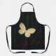 The image shows an aprom featuring a large golden butterfly at its centre on a dark textured background with subtle shades of purple and blue.