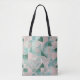 An all-over print tote bag with some light pink, blue, and green shade geometrical patterns print on both front and back-side of bag