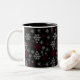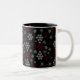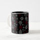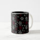 Cozy up with your favourite beverage this holiday season with this cute mug featuring snowflakes on a black background.