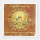 All Saints' Day is celebrated in the Catholic Church on November 1st. It is also known as All Hallows' Day, Hallowmas, Feast of All Saints, or Solemnity of All Saints, and is celebrated in honour of all the saints, known and unknown. This is a lovely napkin with an amber gold marble background with a gold decorative medallion surrounding an image of all the saints in heaven with Jesus, the Virgin Mary, and God the Father.