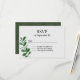 Green and white all seasons wedding RSVP card done in a white watercolor like texture. Watercolor graphics of a stem with leaves, decorates the bottom left front, of the card. The back of the card is done in a dark textured looking green. Personalize all the text for your special day. Matching products are available.