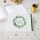 Stylish wedding guest book done in an white textured look and lovely watercolor looking graphics of a green foliage wreath, on the front. The back of the guest book has two sprigs of greenery and a coordinating green edge accent decorating the front and back of the book. Personalize the custom text fields, for your wedding day.