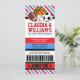 Celebrate your Sport Couples Baby Shower with our all star sport baby shower party ticket Invitation. Design features a soccer ball, baseball, basketball and rugby/football on an admit one sport stadium entrance ticket pass style. This design is perfect for all star sport Baby Shower party, sport Baby Shower party, all star sport couples shower or sport game invitation.