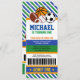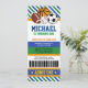 Venez Vous Amuser ! Célébrez votre anniversaire avec notre All Star Sport Party Invitation. Le design comprend du basket, du baseball, du rugby, du football américain et des balles de football sur des bandes bleues foncées, orange et vertes sous la forme de billets d'entrée avec admettre un texte sur le fond. Cette invitation à billets sport allstar est parfaite pour votre fête sportive d'anniversaire, fête sportive de premier anniversaire ou invitation à billets d'événements sportifs.