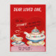 This postcard features a vintage valentine image, with a teapot and a cup of tea. The text reads, I'm all steamed up over you valentine-you suit me to a tea!" The background colour and "Dear Loved One" text can be customized as desired.