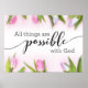 Typography design with caption in white letters, "All Things are Possible With God .” Design is centred inside colourful tulip photography border. Bible verse is from Matthew 19:26.