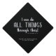 A classy and elegant graduation cap topper featuring the Bible verse Philippians 4:13 "I can do all things through Christ" in white brush lettered style script font. Personalize with your graduation details and click "customize" to edit the background colour.