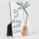 "Do all things with love" Inspirational quote with guitar and tropical watercolor elements