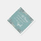 Napkins with distressed white typography on textured aqua background surrounded by watercolor flowers, with well known verse from Romans 8:28, “… All things work together for good for those who love God…”